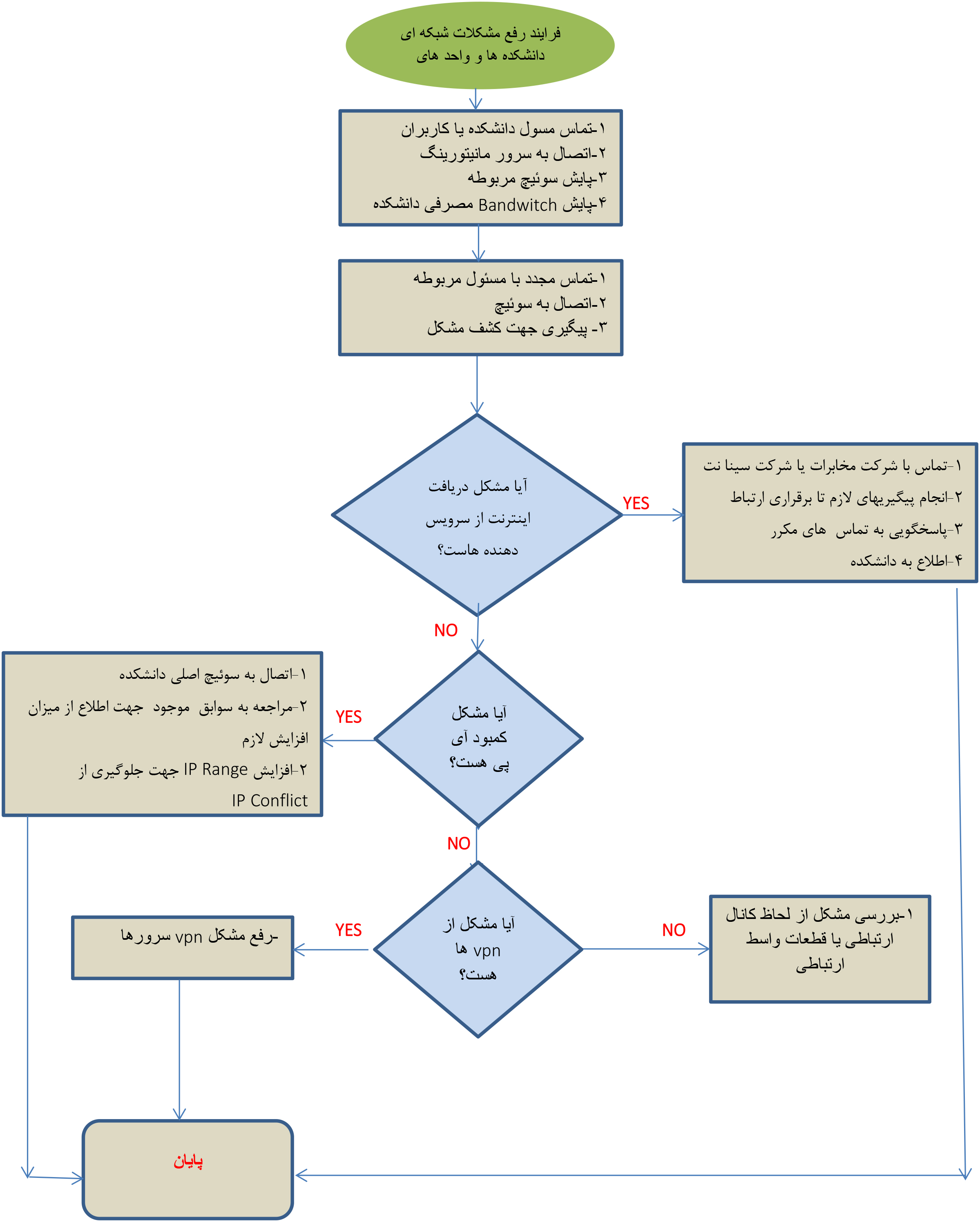 فرآیند رفع مشکلات شبکه ای دانشکده ها و واحدها